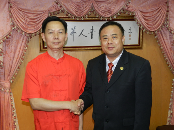 中国易经协会副会长、华夏易经协会副会长、中国易学堪学院副院长陈志鸿(笔名鹤雁)于二○一一年六月七日抵泰,拜访泰国华人青年商会会长李桂雄、副会长张创标等,与李会长、张副会长等做亲切会谈。并就有关易学、堪舆学等学问、知识、经验做了交流。陈志鸿副会长关心关注李桂雄会长工作环境,并提出宝贵建议意见,受到李会长的接受肯定。图为:李桂雄会长与陈志鸿副会长合影。