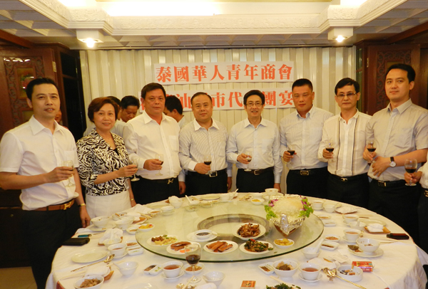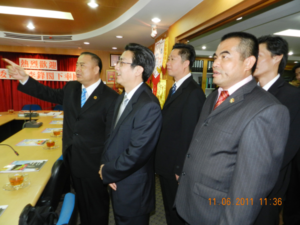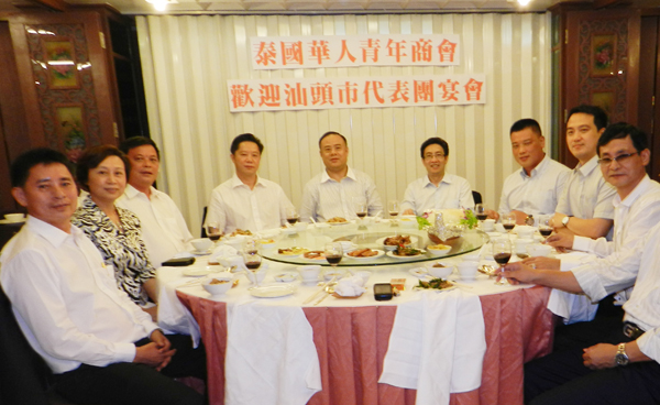 中国广东省汕头市委书记、市人大常委会主任李锋阁下率汕头市代表团一行十一人,於2011年6月11日(星期六)上午11时,特地在百忙之中抽出宝贵时间莅临泰国华人青年商会访问,受到会长李桂雄偕名誉会长、顾问、副会长及常执委数十人热烈欢迎接待。宾主亲切座谈交流,乡音满堂,亲情浓郁感人。中午,青商会假座泰京是隆路香格里拉大酒楼设盛宴招待来自家乡汕头市最高领导人,藉表热情欢迎和致敬之意。