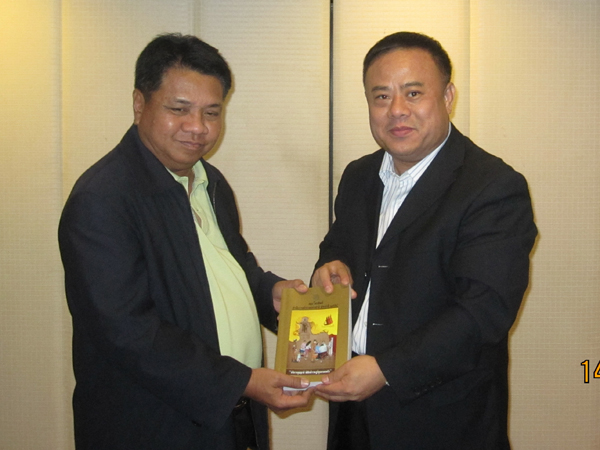 二○一一年六月十四日晚,泰国警察总署总指挥威昌•朴波诗警上将暨夫人假大华大酒店与侨界侨领座谈、聚餐,并赠送2554年度警察通讯录予李桂雄会长。