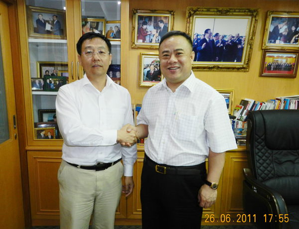 莅泰访问的中国云南省德宏州人民政府副州长、德宏州人民对外友好协会副会长高铁英率代表团一行十人,由泰国云南会馆总干事陈明陪同,于2011年6月26日(星期日)下午五时抵达泰国华人青年商会访问,获李桂雄会长暨顾问杨源辉,会长助理王少青,主任许俊龙,副秘书长文杰、余森录,执委赵春荣及总干事黄成等热情迎接,宾主进行亲切座谈,气氛融洽愉快。