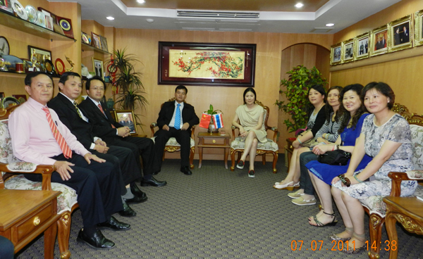 中国江苏省南通市金曼谷皇家SPA会所董事长王冰玉率领南通市企业家嘉宾旅游观光团一行30多人,于2011年7月7日(星期四)下午莅临泰国华人青年商会访问,受到该会副会长钟和武,会长助理胡坚毅、主任许俊龙、常委张杰、陈玉宝、执委赵春森、总干事黄成等热情迎接。宾主互相介绍认识,亲切座谈,气氛欢愉。