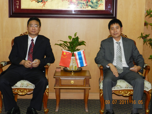 中国云南省归国华侨联合会主席李嵘先生率代表团成员张金鹏(云南民族大学教授、博士生导师),高峰(云南省侨联外联处长),保耀平(云南民族大学),窦孝勇(云南省侨联办公室科员)一行,于2011年7月9日(星期六)下午莅访泰国华人青年商会,获本会常务副会长林嘉南,副会长林兆祥、蔡上新,会长助理王少青,主任许俊龙,执委赵春荣,总干事黄成等热情迎接。