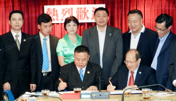 李桂雄会长代表青年商会、钟广荣常务副会长代表广东省侨商投资企业协会,共同签署友好合作协议书。