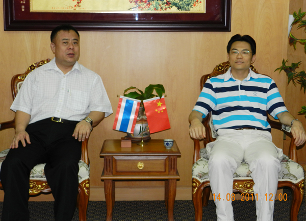 中国广东省青年联合会参加第六届世粤联会暨青年论坛嘉宾团一行,由团长陈宏宇(共青团广东省委副书记、广东省青年联合会副主席)率领,于2011年8月14日上午莅临泰国华人青年商会参访,受到李桂雄会长、顾问马伟鹏、副会长吴楚潮、张创标,主任许俊龙等热情迎接,并举行座谈交流。