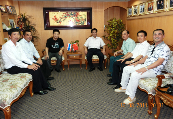 2011年8月13日晚泰国华人青年商会副会长郑树丰、张创标会见汕头市人工侨工委主任陈细弟、市侨联主席杨鮀生、市外事侨务局副局长陈鹏、潮南区外侨局局长郭梧洲、濠江区外侨局局长陈智生等并做亲切会谈。