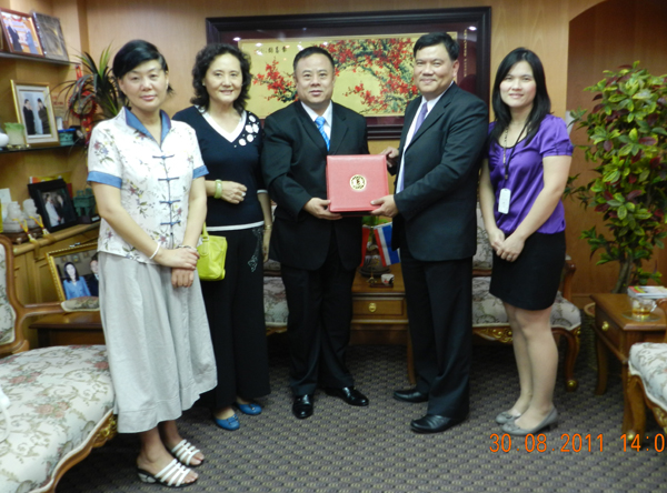 二○一一年八月三十日下午,泰华农民银行助理总裁王炳金、副处长利淑娟,代表该银行董事局抵本会访问,祝贺本会仝人中秋节快乐、和谐团圆、会务兴旺发达,受到会长李桂雄、名誉会长韩宗渭、执委马羚及总干事黄等的热情迎接。