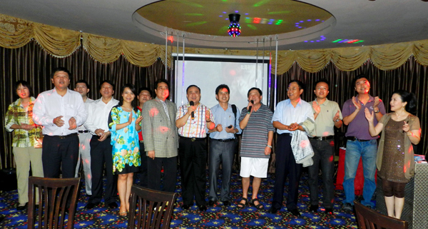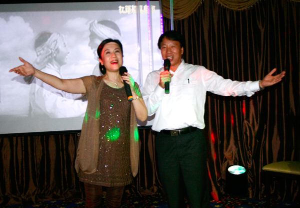 歌唱娱乐节目登场,首先由方文国参赞和方舫小姐双方合唱“敖包相会”;接着是张叶飞秘书,杨为民秘书等,李荣副会长,胡坚毅会长助理,时磊秘书长,王易主任,文杰副秘书长,李桂慈常委,黄雪明常委等陆续演唱“荷塘夜色”、“月亮代表我的心”、“等待”、“前世有约”、“朋友”、“沉默是金”、“请跟我来”、“九月九的酒”、“上海滩”、“北京一夜”、“芒花”、“我的中国心”及“做你的爱人”等系列经典名曲,歌甜舞美,声情并茂,掌声阵阵,高潮迭起,最后,宾主齐唱“欢乐今宵”,至晚十时多始告尽兴圆满结束。
