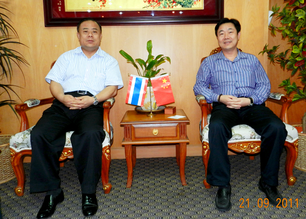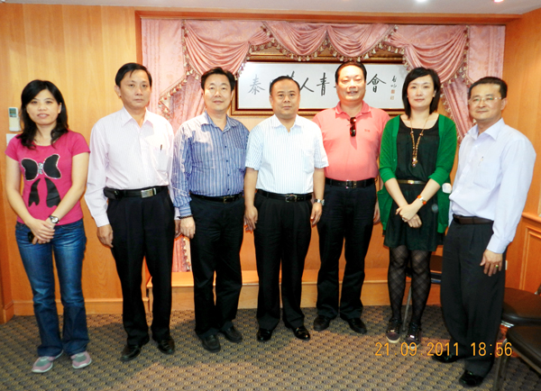 中国广东省政协委员、广东日化商会副会长、汕头市拉芳集团总裁、泰国华人青年商会顾问吴桂谦偕吴景璇(拉芳集团副总裁),吴桂标(拍亚物流有限公司董事长)一行,于2011年9月21日下午访问泰国华人青年商会,受到李桂雄会长偕许俊龙主任,黄成总干事热烈迎接。