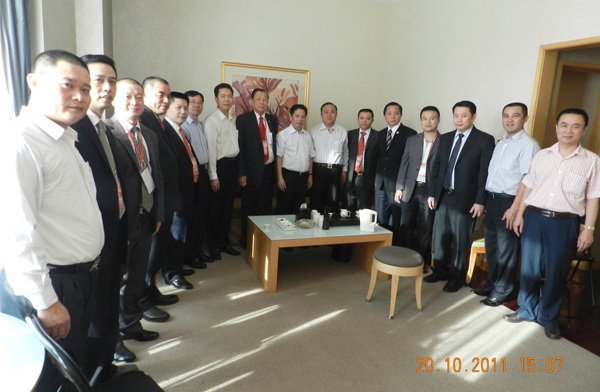 二 0 一 一年十月二十日,泰国华人青年商会代表团赴汕头特区出席汕头特区建立三十周年庆典活动。期间,潮南区委书记陈武南、代区长刘永铭、常委苏华渠、侨联主席荘楚光、侨务局长郭梧洲、副局长陈少仪、侨联主席荘楚光等抵君华大酒店拜访李桂雄会长等一行,畅谈家乡的情况,感谢李会长及青年商会一直以来对家乡的关心和支持,李会长也表示重视和看好对家乡的经济建设与发展,诚意的邀请陈书记、刘区长率团访问泰国,探望乡亲。青商会代表团参加会见有:副会长郑树丰、荘基锋、张创标,顾问李光龙、马文钦、李铁雄,会长助理王少青,主任许俊龙等。