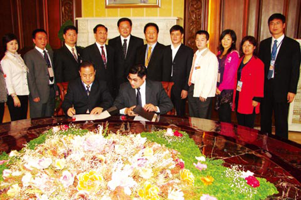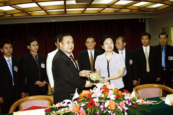 2007年10月8日汕头市青年联合会主席周崇凝与李桂雄会长签署建立友好关系协议书并互赠纪念品