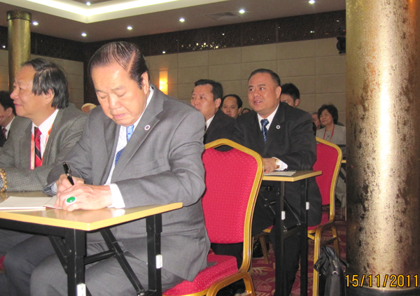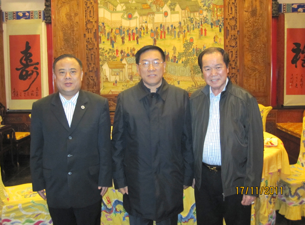 泰国中华总商会刘锦庭副主席(左)、国务院侨办许又声副主任(中)、李桂雄会长(右)