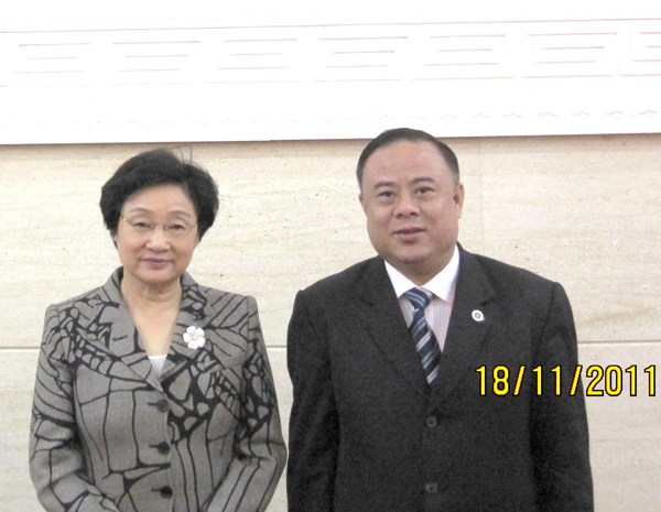 中国国务院侨办主任李海峰阁下(左)与李桂雄会长(右)合影。