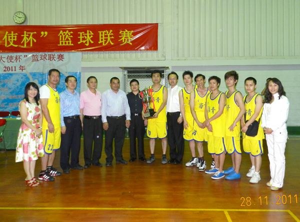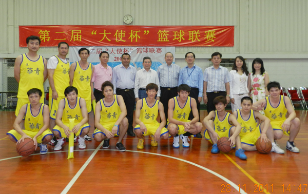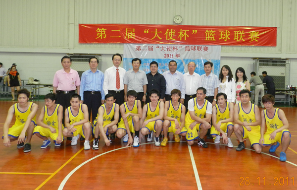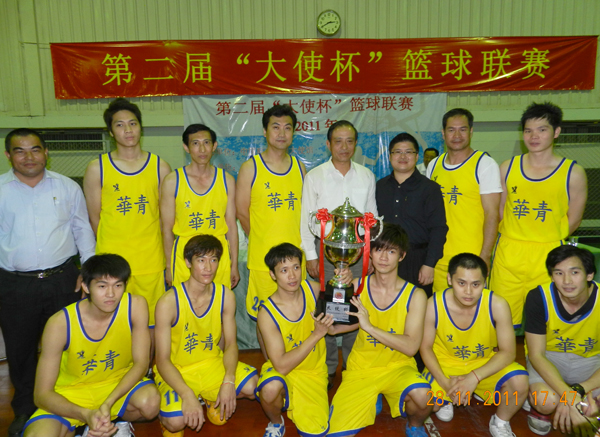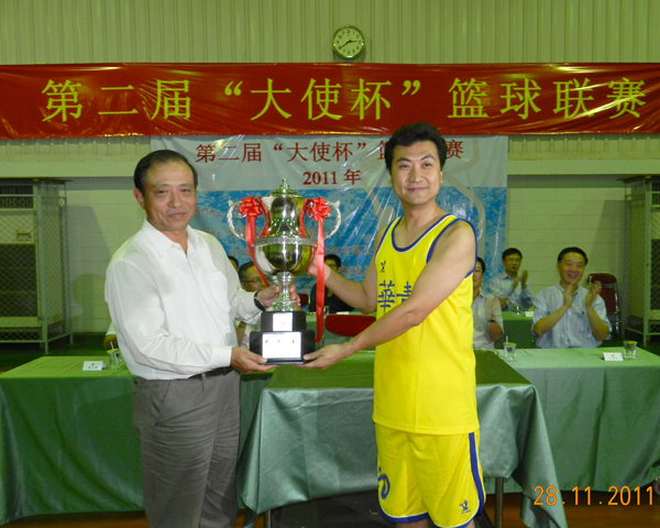 中国驻泰大使馆主办,驻泰中资企业商会承办,中国外运(泰国)物流有限公司赞助,泰国中华总商会与泰国篮球总会、泰国华人青年商会、泰国青年企业家协会、泰华进出口商会、正大集团等15个单位联合协办的第二届“大使杯”篮球联赛,经过二个多月的激烈角逐,于2011年11月28日下午5时降下帷幕,泰国华人青年商会队一路过关斩将,夺得“大使杯”冠军,博乐大学队获得亚军,正大队与老山东队并列第三名。