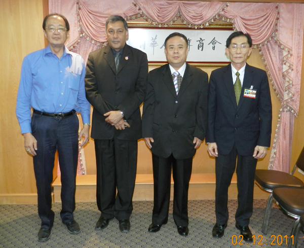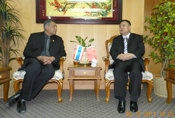 二 0 一 一年十二月二日,泰国贸易委员会秘书长亚尼律•沙莫何宗、顾问魏荣源莅临泰国华人青年商会访问,受到会长李桂雄的欢迎接待、亲切座谈,就有关泰中双方的贸易往来做互相了解、并对农产品水果、大米、橡胶等产品的出口合作进行了交流,望今后互通信息,加强联络,为推动泰中两国贸易合作做出贡献。