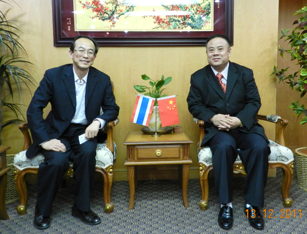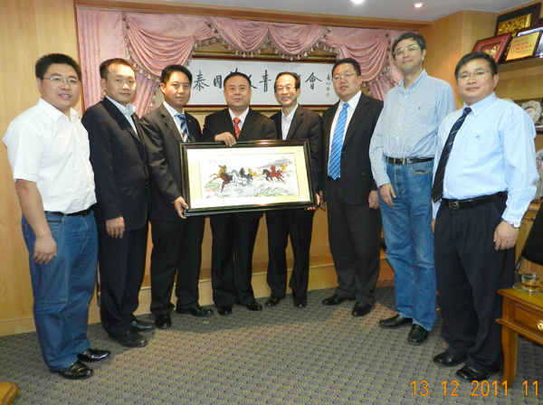 中国水电基础局有限公司总经理赵存厚先生率总经理助理兼海外事业部总经理姚朝明、海外事业部副总经理王保辉暨中国水电局泰国有限公司总经理王树民、时代经典(北京)通信科技有限公司董事陈鹤维、全兴有限公司总经理高在荣一行莅泰考察调研,于2011年12月13日上午访问泰国华人青年商会,受到李桂会长、宁禾副会长、福利主任许俊龙等热情接待。