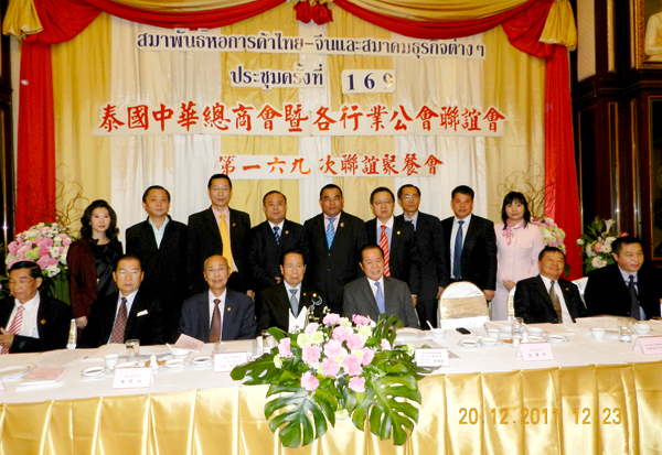 2011年12月12日,泰国中华总商会暨各行业公会联谊会第169次联谊聚餐会,假泰国中华总商会大厦九楼光华堂举行。大会主席吴宏丰博士、大会副主席兼执行主任刘锦庭在会上讲话致词,泰国华人青年商会出席者有:会长李桂雄、副会长邝锦荣、副会长张创标、会长助理许少玉、财务主任欧阳建生、福利主任许俊龙、体育主任蔡孝兴、副秘书长林立新、孙丽玲、总干事黄成等。