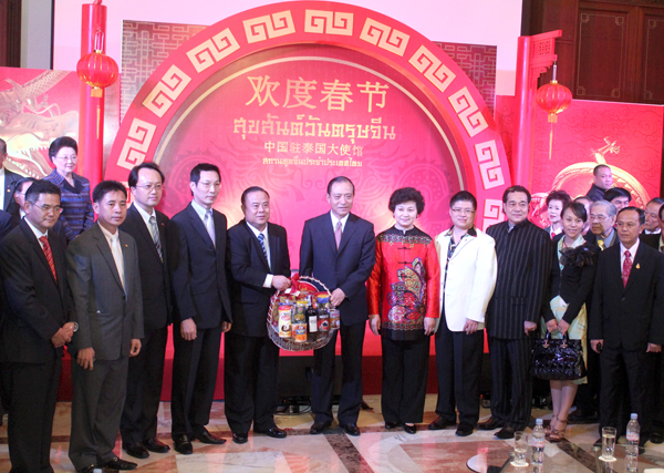 泰国总理英拉阁下在中国大使馆与管木大使、泰华侨领共庆春节。